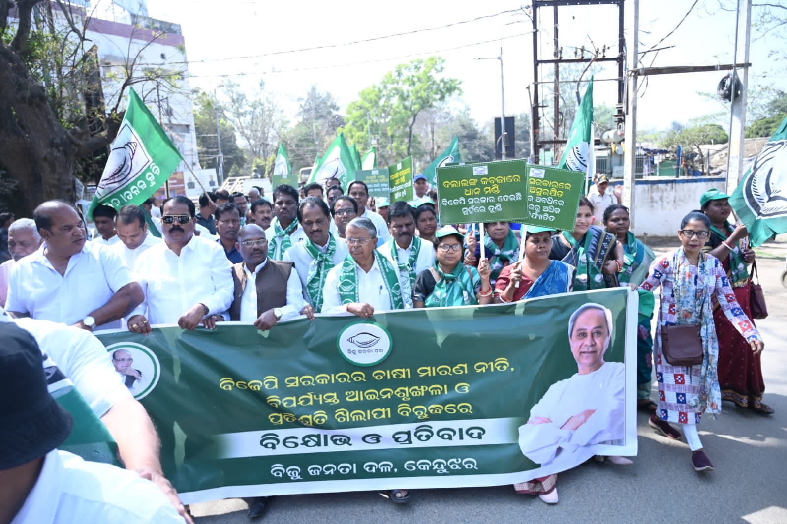 केंदुझर, (निप्र) : केंदुझर जिला सहित राज्य के विभिन्न हिस्सों में धान खरीद में उत्पन्न अव्यवस्था और कानून-व्यवस्था की गिरती स्थिति के विरोध में बीजू जनता दल (बीजद) की जिला इकाई ने विशाल प्रदर्शन और जनसभा आयोजित की। जिले के विभिन्न क्षेत्रों से पहुंचे पार्टी कार्यकर्ता, नेता और जनप्रतिनिधि काली मैदान से रैली निकालते हुए शहर परिक्रमा कर जिलाधिकारी कार्यालय पहुंचे।