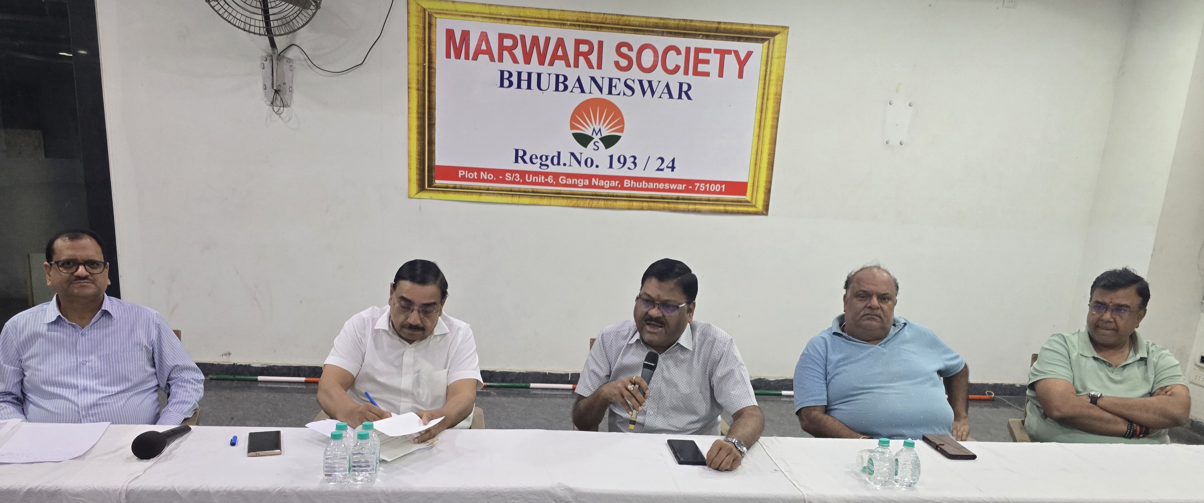भुवनेश्वर, (निप्र) : स्थानीय मारवाड़ भवन में बुधवार को मारवाड़ी सोसाइटी भुवनेश्वर की कार्यकारिणी बैठक आयोजित की गई। बैठक का उद्देश्य आगामी होली बंधु मिलन कार्यक्रम के सफल और सुव्यवस्थित आयोजन की तैयारियों की समीक्षा करना था। बैठक में सोसाइटी के सचिव जितेंद्र मोहन गुप्ता, अध्यक्ष संजय लाठ, कोषाध्यक्ष सीए सुरेन्द्र अग्रवाल, होली आयोजन समिति के चेयरमैन चेतन टेकरीवाल और फूड आयोजन समिति के चेयरमैन सुरेश कुमार अग्रवाल उपस्थित रहे।