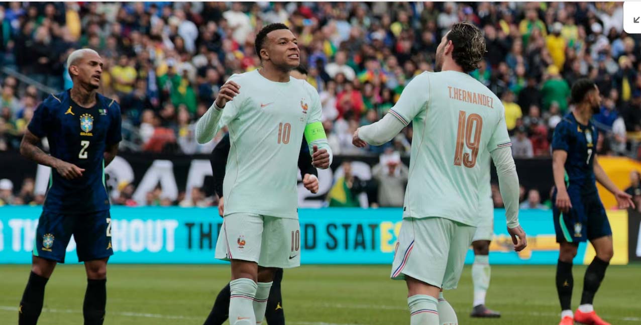 फॉक्सबोरो (अमेरिका), (एज: स्टार स्ट्राइकर किलियन एमबापे के गोल की मदद से फ्रांस ने विश्व कप फुटबॉल से पहले एक महत्वपूर्ण मैत्री मैच में ब्राजील को 2-1 से हराया। एमबापे इस मैच से पहले घुटने की चोट से जूझ रहे थे लेकिन उन्होंने दिखाया कि फिलहाल वह इस समस्या से परेशान नहीं हैं। उन्होंने 65वें मिनट में मैदान छोडऩे से पहले एक महत्वपूर्ण गोल किया। स्टेडियम में मौजूद 66215 दर्शक ब्राजील का समर्थन कर रहे थे लेकिन एमबापे (32वें मिनट) और ह्यूगो एकितिके (65वें) ने गोल करके फ्रांस को उस मैदान पर 2-0 की बढ़त दिला दी, जहां वह विश्व कप के ग्रुप चरण के अपने अंतिम मैच में नॉर्वे का सामना करेगा।