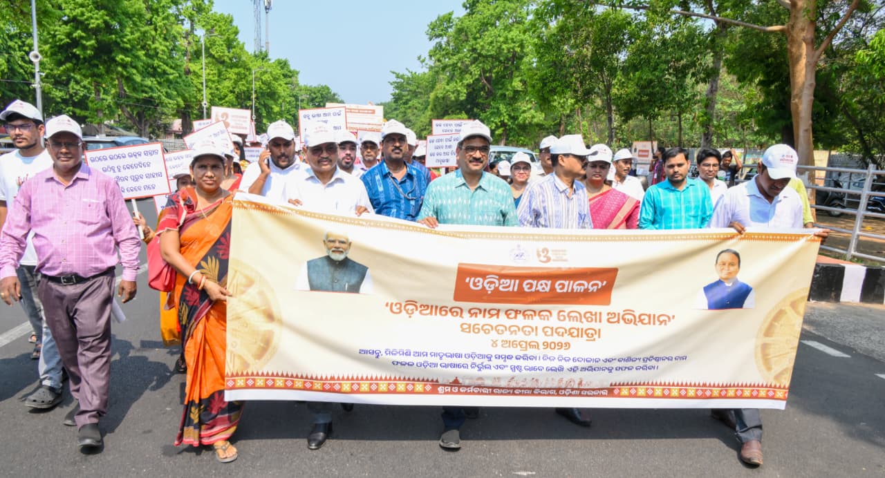 इस जागरुकता पदयात्रा का शुभारंभ श्रम आयुक्त इंद्रमणि त्रिपाठी ने किया। इस अवसर पर उन्होंने कहा कि 4 अप्रैल से 7 अप्रैल 2026 तक चार दिनों के दौरान विभागीय अधिकारी विभिन्न दुकानों और व्यावसायिक प्रतिष्ठानों का निरीक्षण करेंगे। जहां ओड़िया नेमप्लेट स्पष्ट रूप से नहीं लगाए गए हैं, वहां व्यापारियों से सही और स्पष्ट रूप में ओडिय़ा नेमप्लेट लगाने का आग्रह किया जाएगा। उन्होंने कहा कि हमारी भाषा हमारी पहचान और गर्व है, इसलिए प्रत्येक व्यावसायिक स्थल पर इसका उपयोग सुनिश्चित करना हम सभी की सामूहिक जिम्मेदारी है।